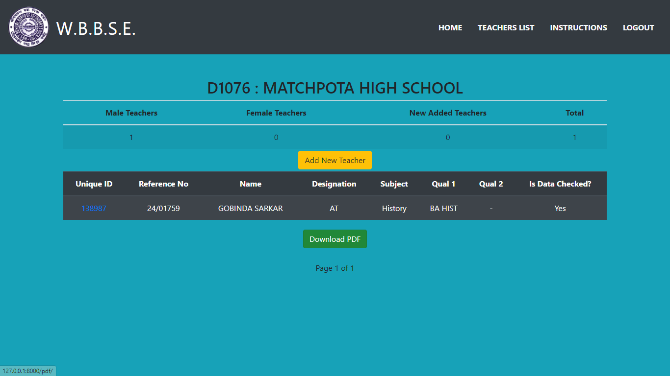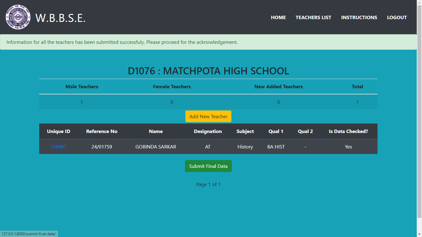 After checking the data of all the teachers, proceed to final submission for generating the relevant PDF by clicking on button “Submit Final Data” at the end of the teachers list.