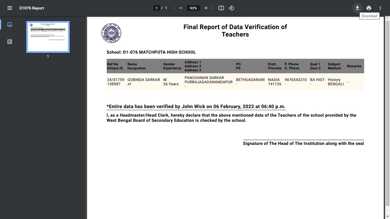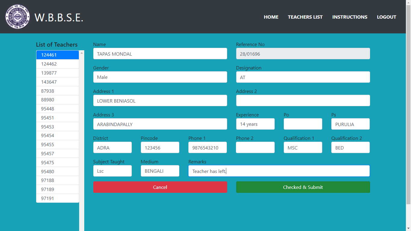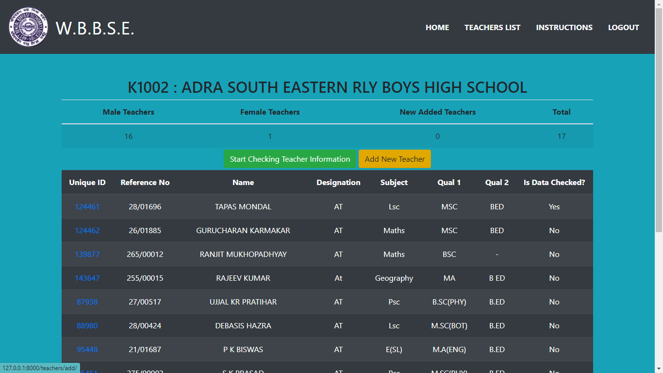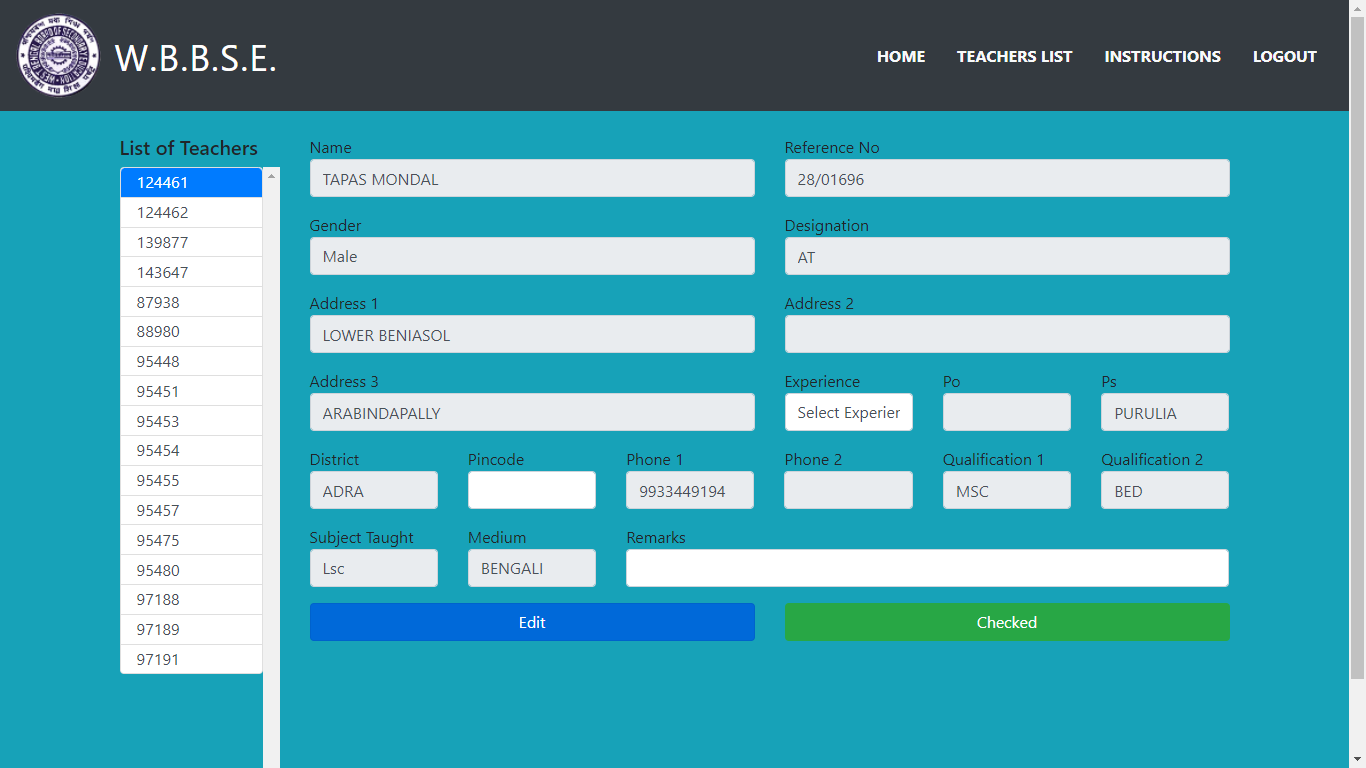 Now after clicking on Start Checking Teacher Information” button you get the following screen:
