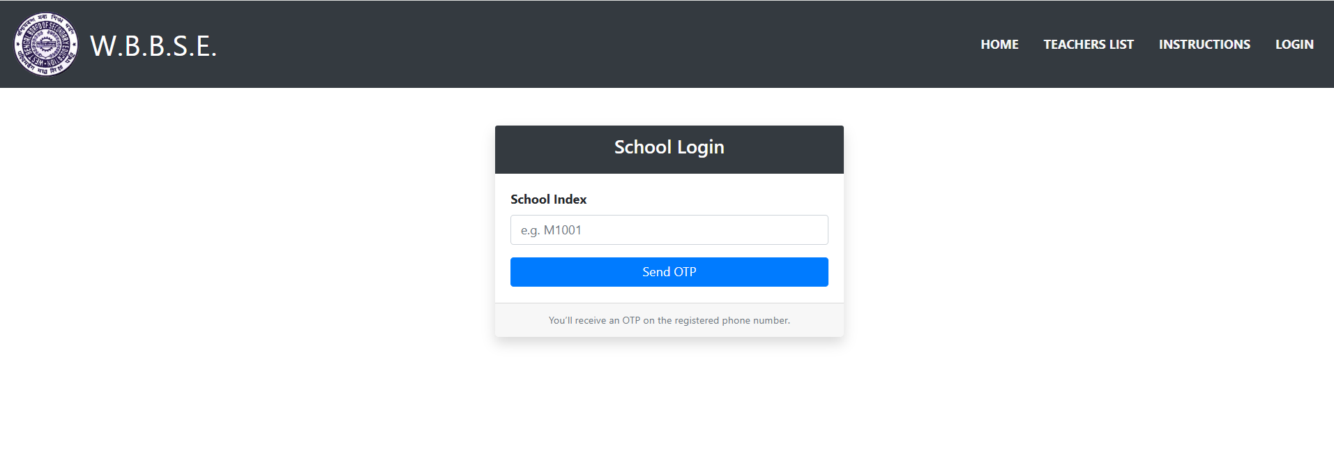 Now click on login and then you get the following page: Here you enter your school index without any gaps or symbols as A1001 and click on send otp button to go to send otp page.
